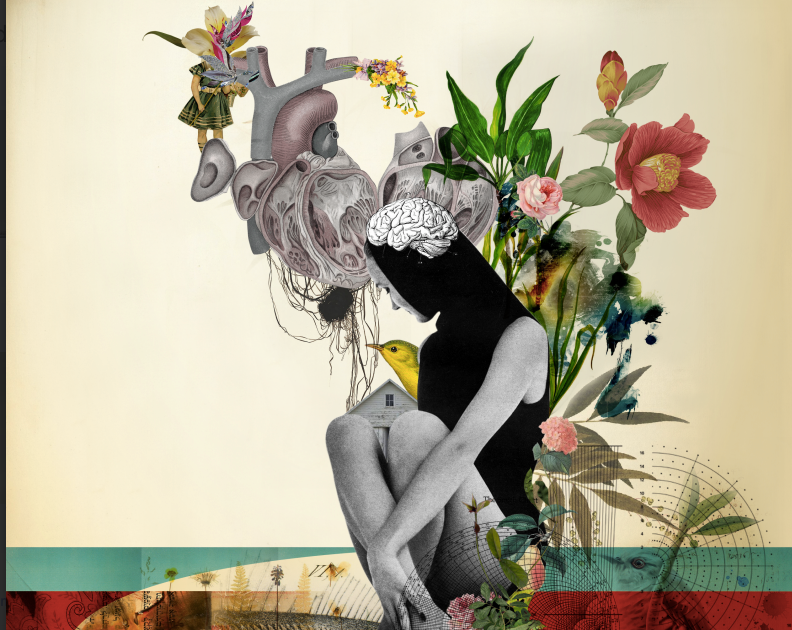 Her creative process is based on the layering of diverse materials—photography, engravings, gold leaf, crayon, pencil, and vibrant inks—each interacting in subtle harmony. These seemingly disparate elements are orchestrated with precision, balancing chance and control to generate luminous and symbolic spaces. Gold leaf emerges as a radiant presence, evoking spiritual resonance; photography anchors the work in lived experience; while hand-drawn gestures, rendered in pencil or crayon, infuse the compositions with intimacy and vulnerability.